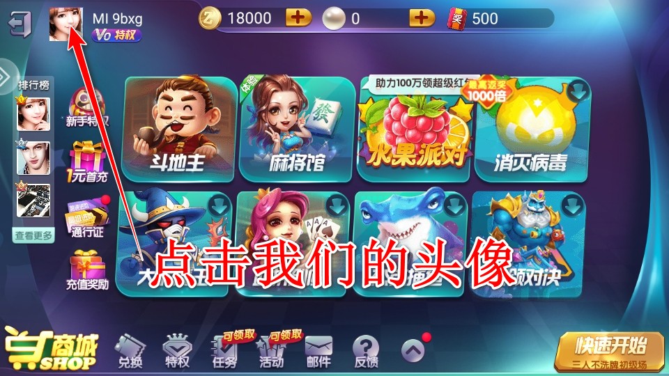 1.在在土豆下载宜宾博雅棋牌后进入游戏首页,点击我们的头像