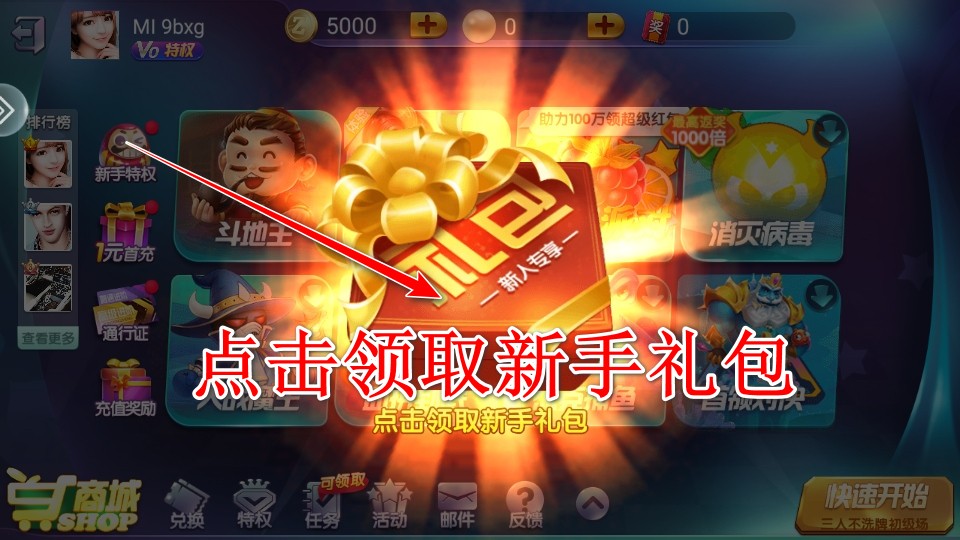 6.登录游戏后点击领取新手礼包。