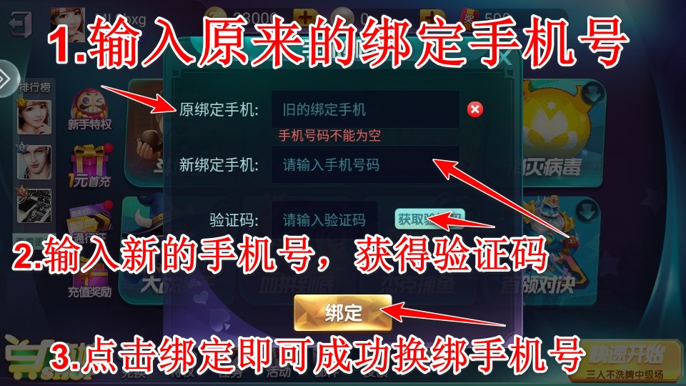3.输入原来的绑定手机号,输入新的手机号,获得验证码,点击绑定即可成功换绑手机号。
