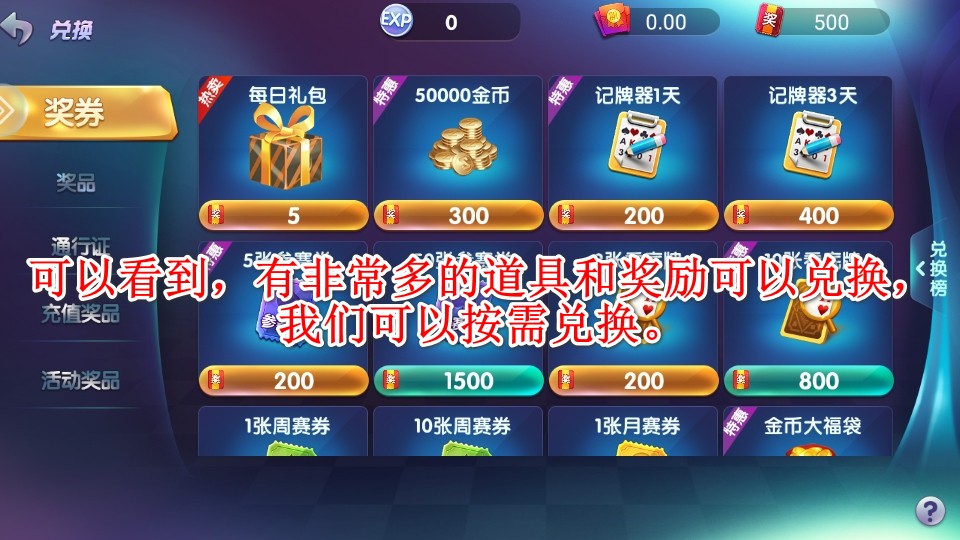 13.可以看到,有非常多的道具和奖励可以兑换,我们可以按需兑换。