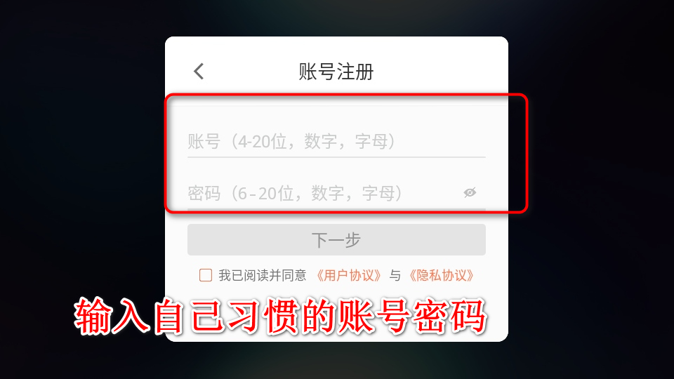 3.输入自己习惯的账号密码