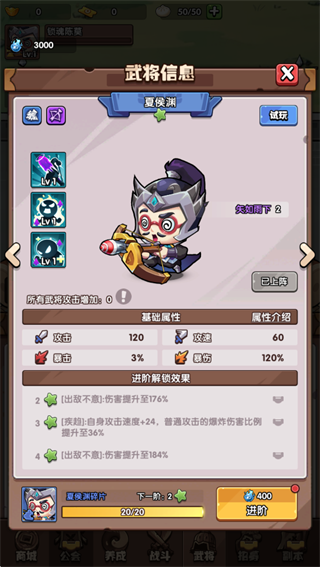 夏侯渊:普通攻击的弹道+1