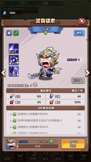 乐进:技能[先登死士]扔出巨型飞刀的数量+1