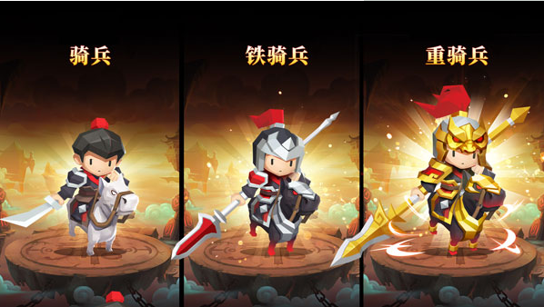 “骑兵”共分为骑兵→铁骑兵→重骑兵三个阶级。作为战场上攻击速度最快的兵种,游戏中骑兵是具有灵活机动特性的快速反应,比较适合游记战术,在战场上克制步兵,并能削弱步兵对自己的伤害,对其伤害大幅增加。