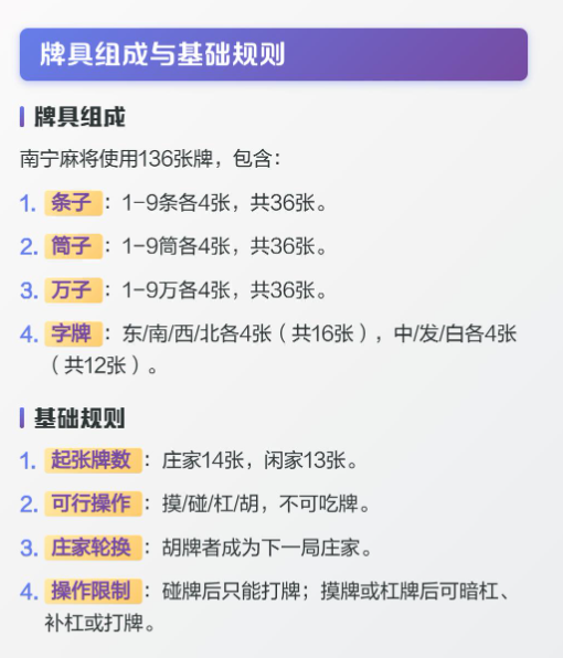 和牌要求:通过摸牌、吃、碰、杠牌等方式,使手中的牌按照相关规定的牌型条件和牌;