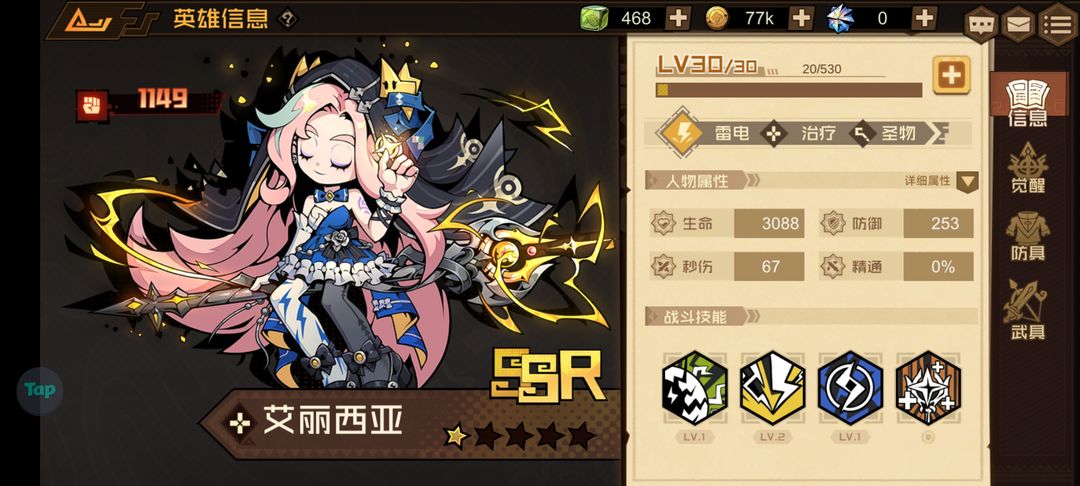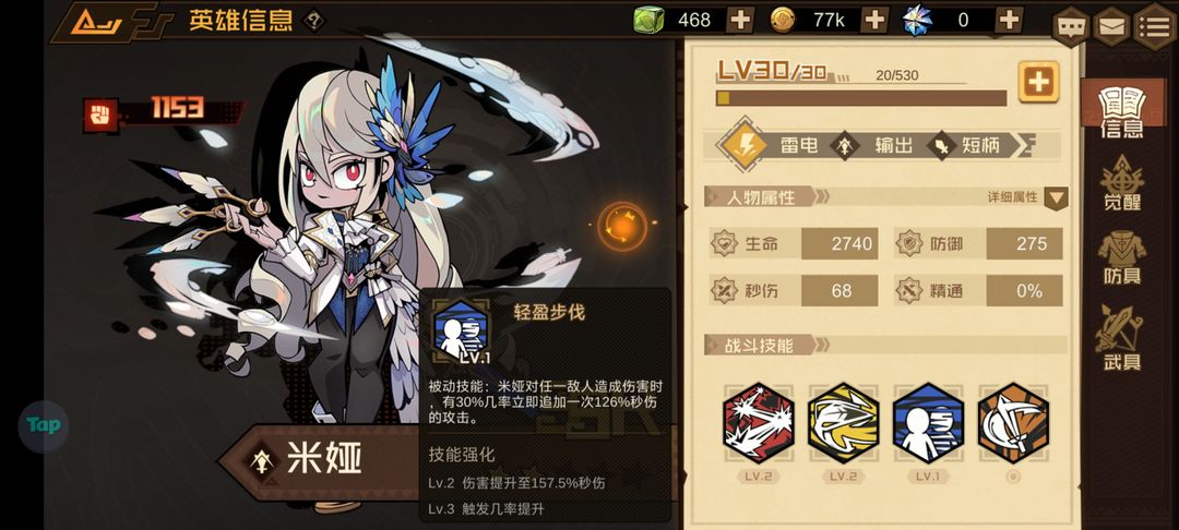 ps:任务一定要做,不然没办法升级玩下去,装备武器可以一个一个英雄点击查看哪个可以装备。做完主线任务第一天第二篇的时候,基本可以通过第一章前两关。