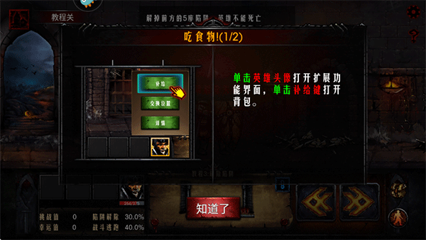 4、当在地牢中边遇陷阱时小心靠近陷阱的边缘,单击陷阱,选择手工解除即可自动开始解除陷阱。解除陷阱可能成功,也可能失败,成功率是团队所有英雄解除陷阱能力的总和;