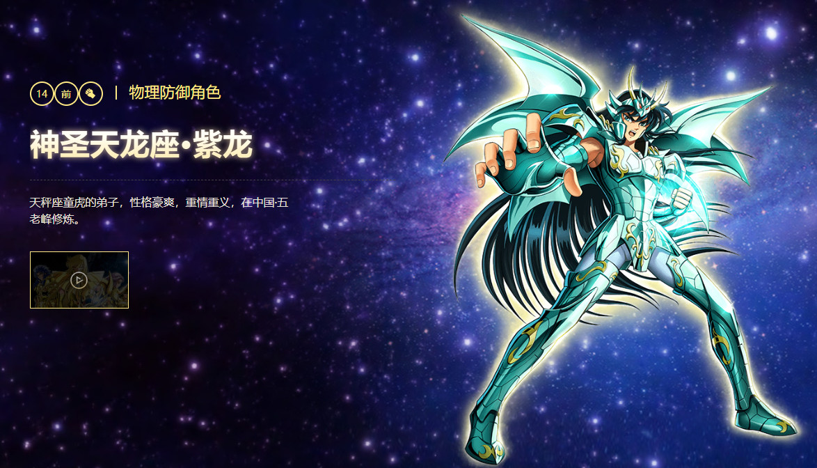 前排在圣斗士星矢重生14资质阵容中,处于防御作用解析:紫龙的技能格挡反击拥有无视防御的反弹战力伤害,是前排的最佳选择14资质阵容米罗+紫龙战力爆棚