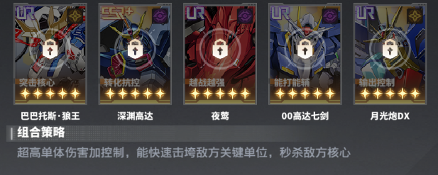 F91高达降低敌方免伤后,支援机体挂增益buff,己方输出强袭自由高达光翼命运强势爆发秒人,当然大佬有巴巴托斯狼王之类的UR卡,可以直接替换主c