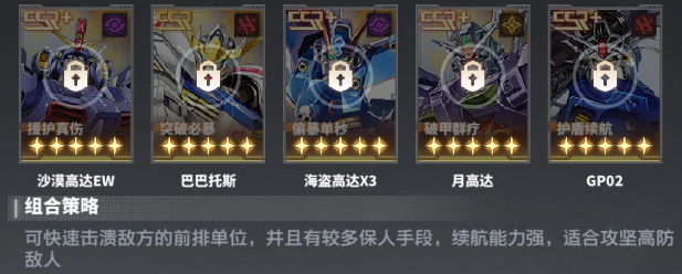 如桃桃卡普尔(加暴抗加暴击)、法尔西娅(可复活机体)、毁灭系德天使(回血加攻)、创造系月高达(破甲+回血)