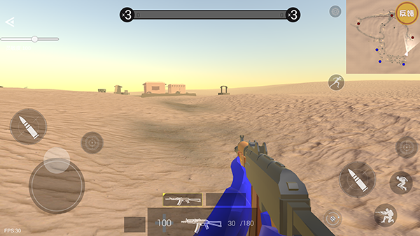 4、滑动左下角轮盘移动人物,点击右下角射击、下蹲、跳跃等。