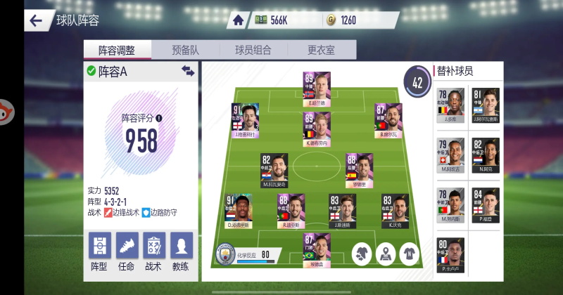 所以我这边给各位朋友一个前期百搭阵容,以8名90以下的球员卡+替补席凑出一个100化学的阵容,剩下三个主力位置可以上任意卡,来实现前期的战力最大化。