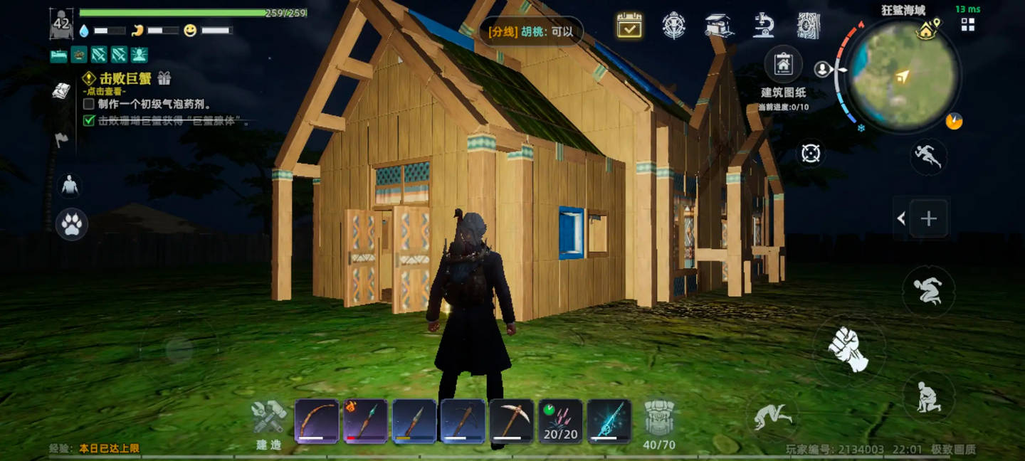 8、开局建的房子有大用,领地可以整体回收。遇到打不过的怪领地放高点,在房子里面打怪用弓箭击杀。