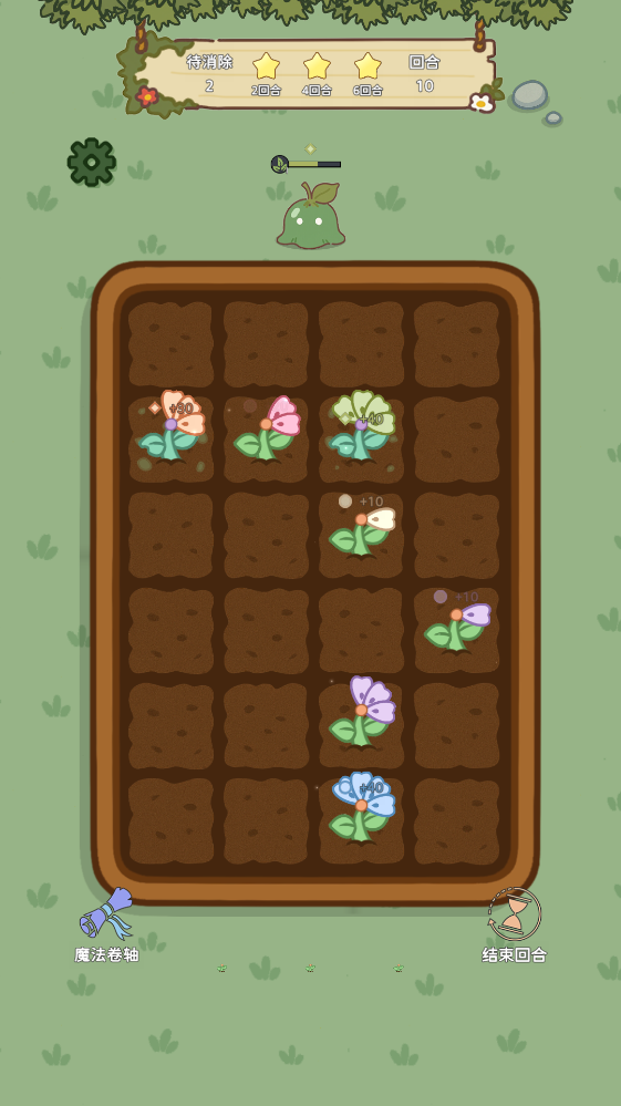 1.游戏开始的时候会有新手教程,拖动预备区的花朵到空地上,通过合成花朵消除坏花。