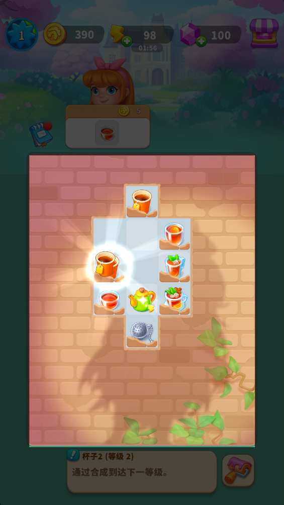 3.你还可以进行合并游戏来赚取更多的金币,将相同类型的物品进行合并。