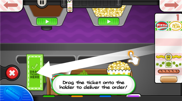 6、热狗制作完成,点击到汉堡中根据需求添加小零食。