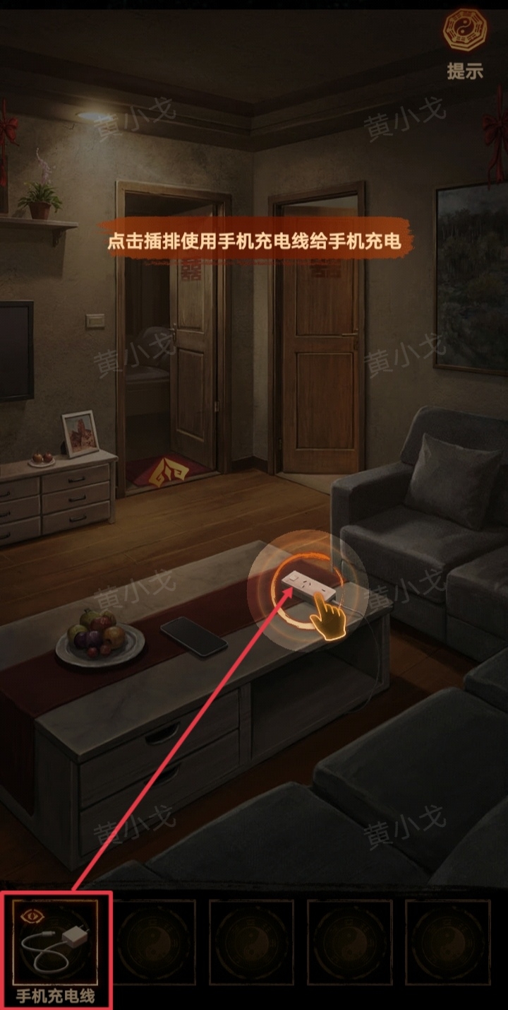 2.对插排使用【手机充电线】,给手机充电,然后是一大段剧情