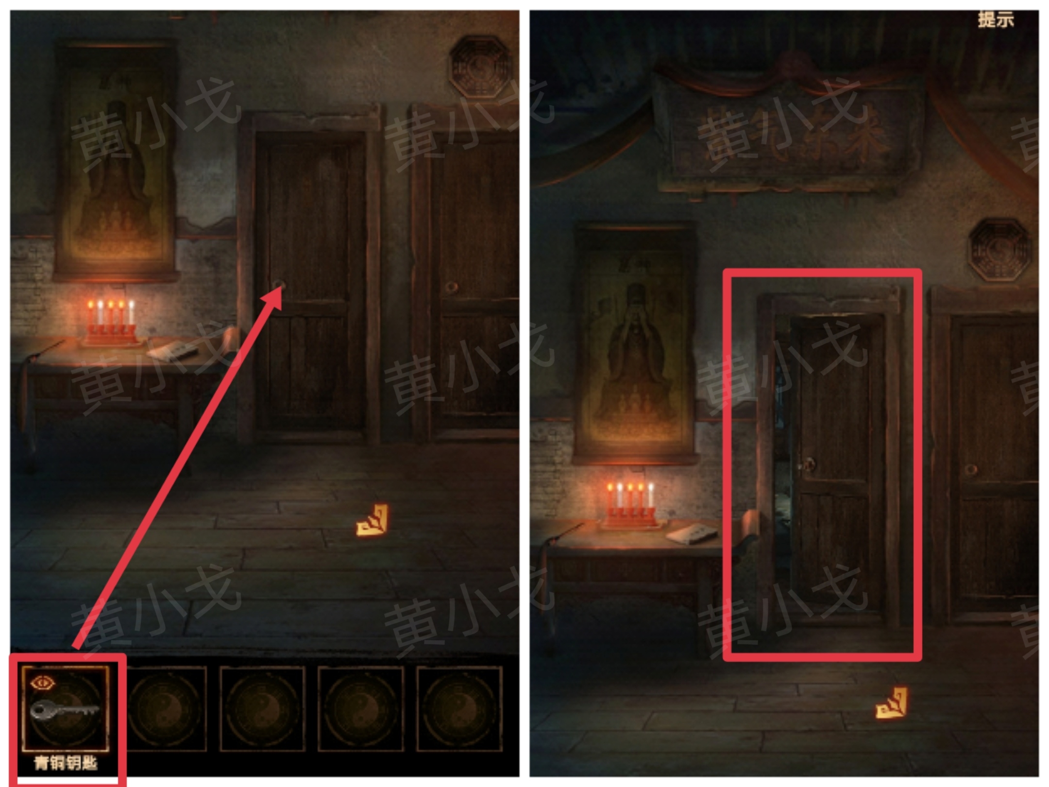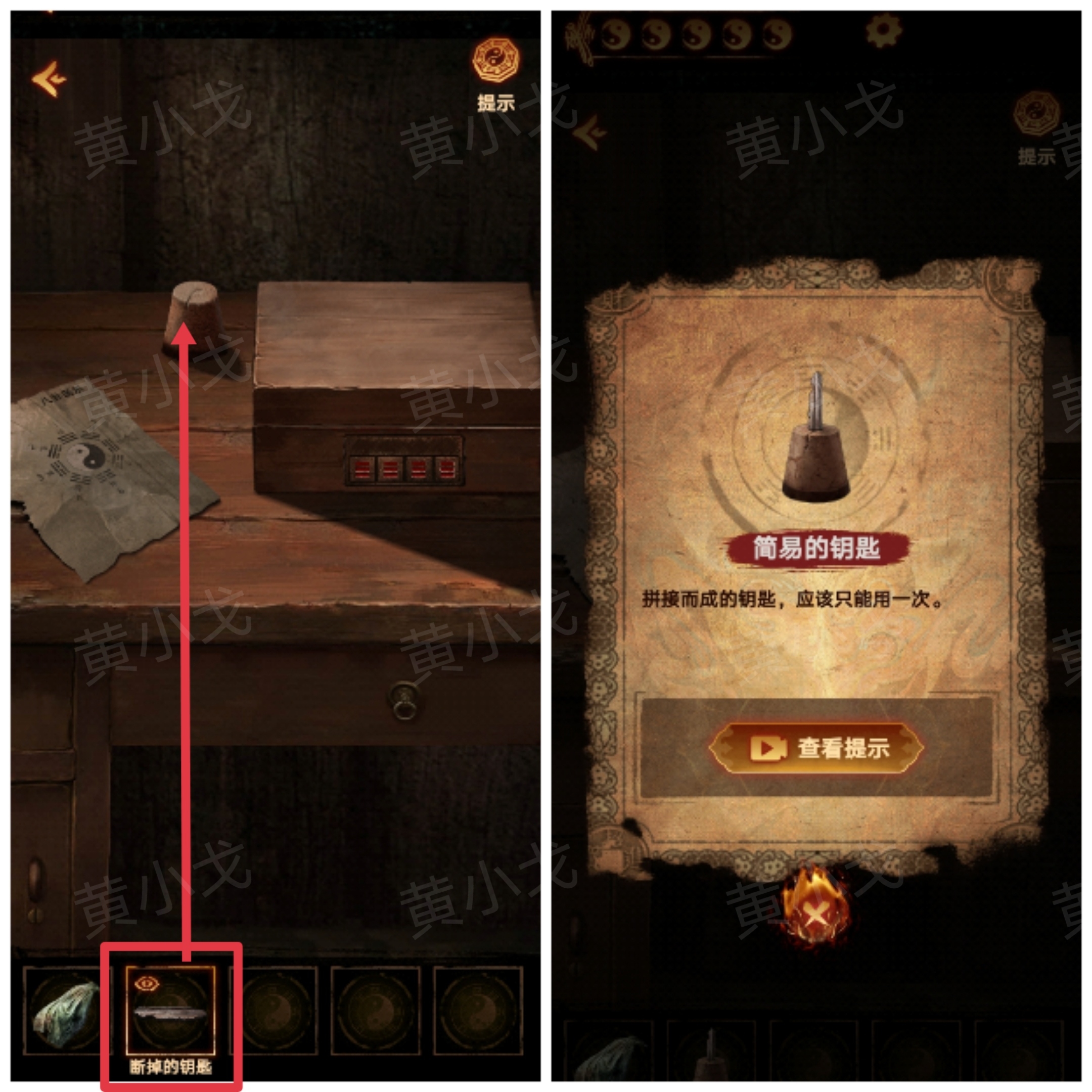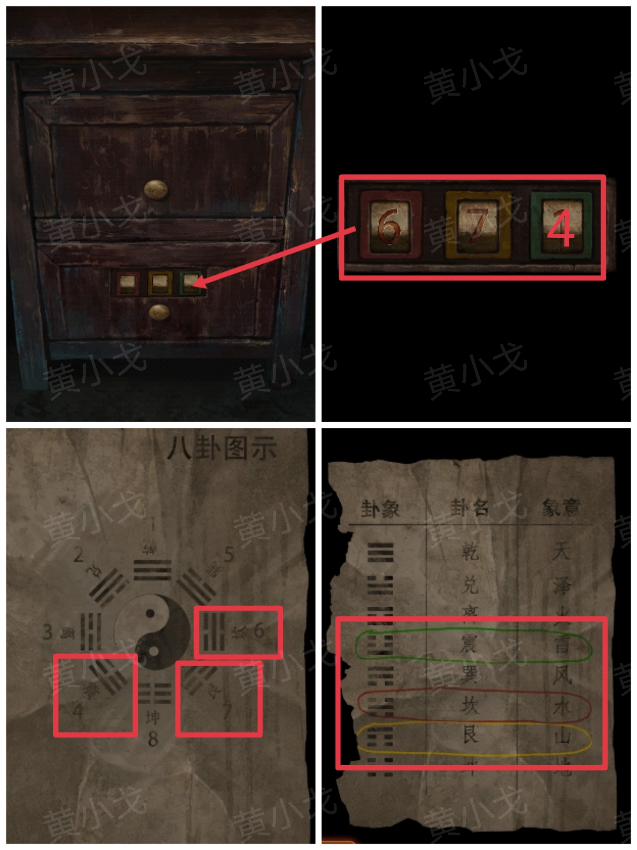 24.根据图案提示,结合纸团上的线索,调整对应的卦象;打开盒子,获得【古铜钥匙】
