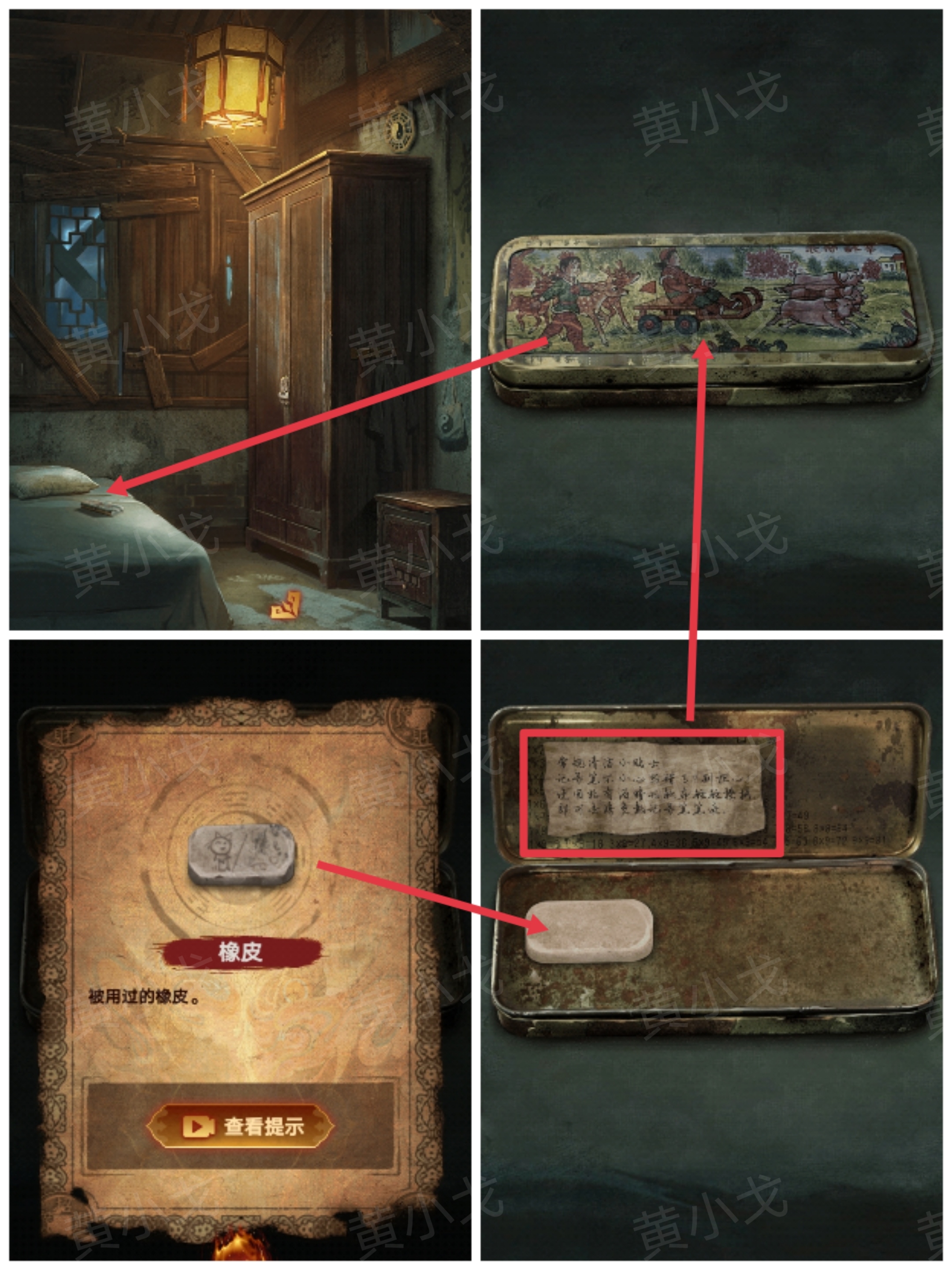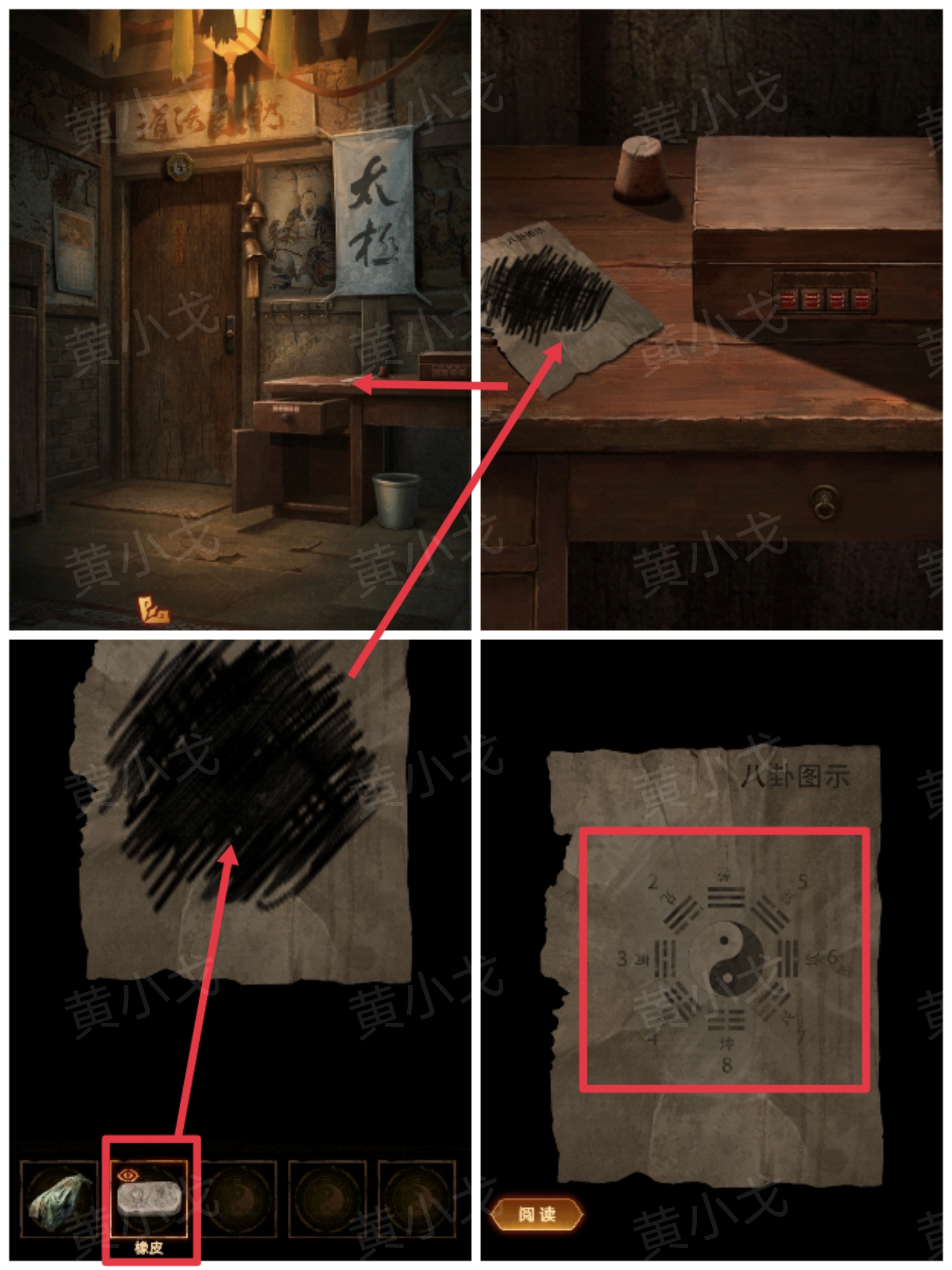 15.点击桌子上的书页,用【橡皮】擦掉上面的笔迹,获得八卦图示线索