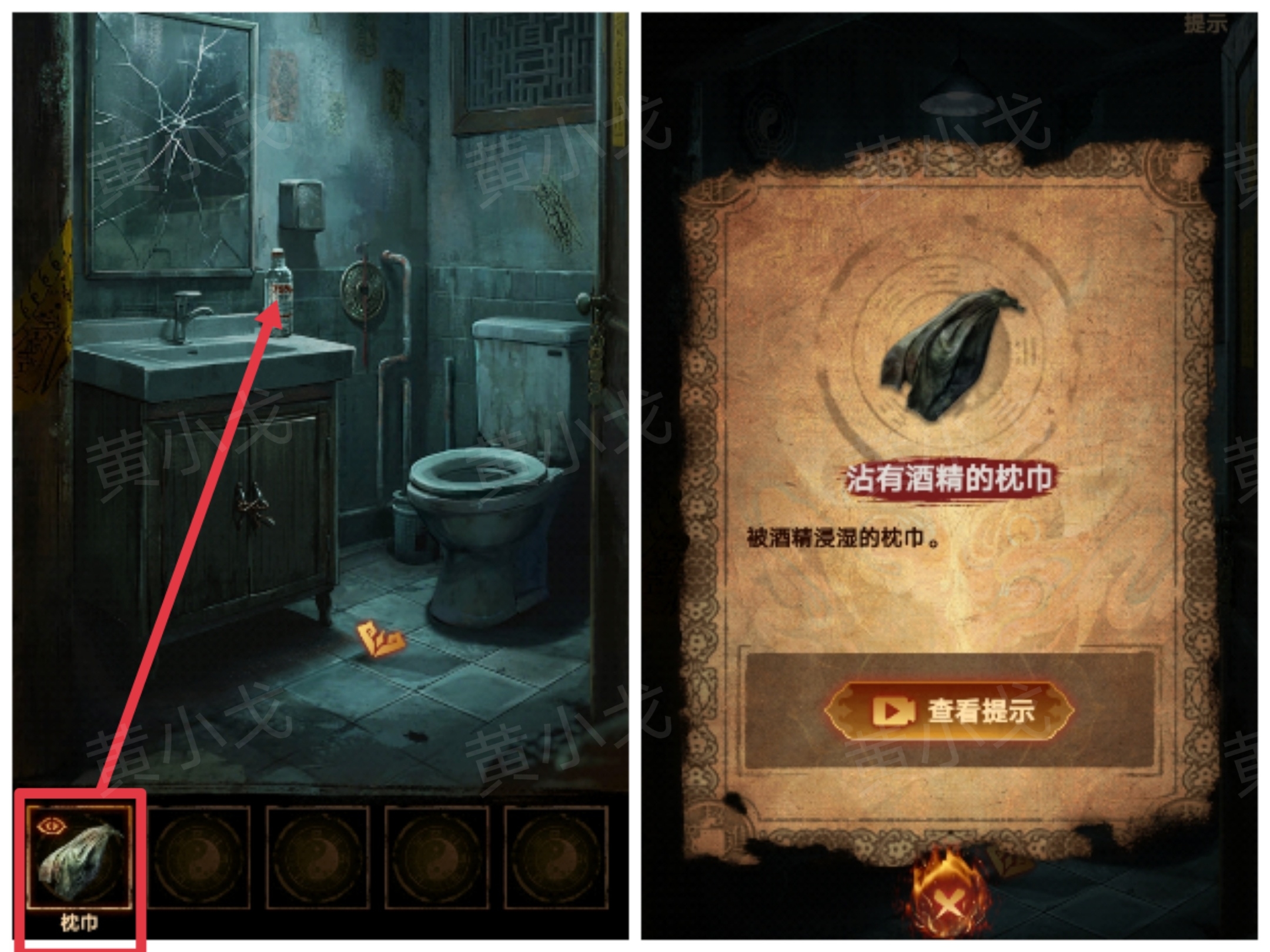 22.用洗漱台上的酒精沾湿【枕巾】,获得【沾有酒精的枕巾】