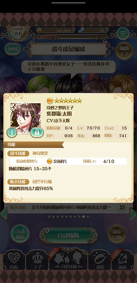 3、注意:以前很多人打的分数挑战我会选择最后一个带增加时间,有封印技能的怪,带解封印的王子,练度够了你想带谁带谁(划掉)。