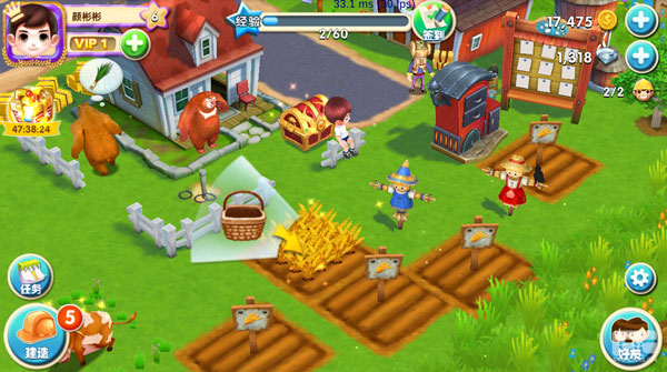 每个农田可以种植任意作物或者果树。成熟的农作物将会存放于谷仓之中,如果农作物太多,那么就赶紧升级你的谷仓或者出售出去吧。