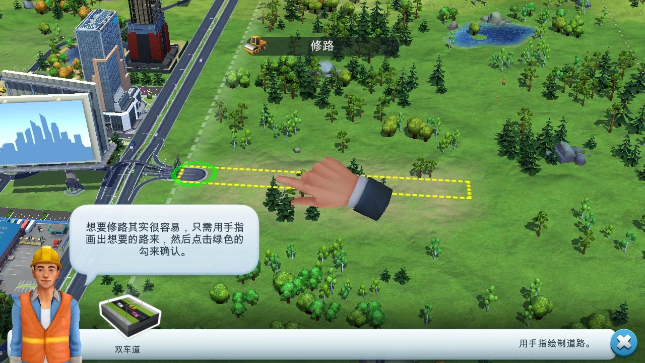 4.修路通过手指从绿色圆点滑动即可建设一条公路。