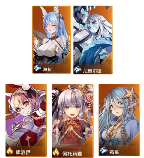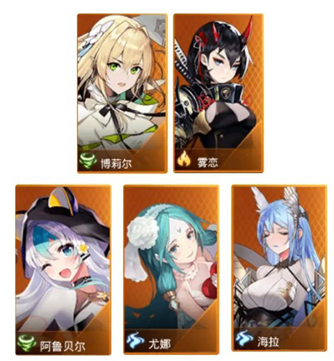 后排:阿鲁贝尔、尤娜、海拉(无尤娜可换霜星,海拉可换拉比丝)