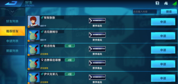 3、如下图,我们可以直接添加游戏推荐的好友,点击申请就可以了