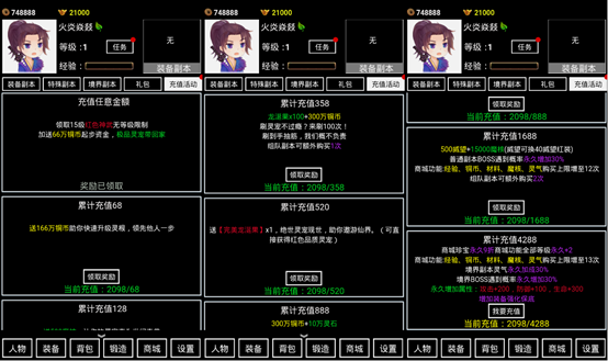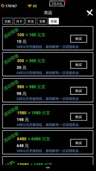 « 充值:前文有提,648以内充值档位,每档都有一次双倍机会,按需求买。