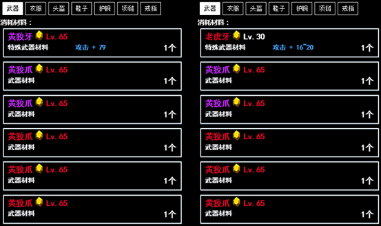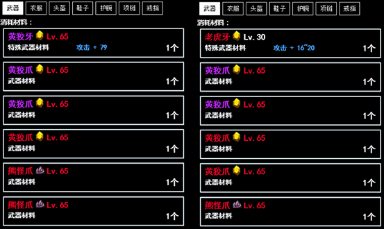 这种方式不使用相生材料,极品装备的出现概率会有所降低,且打造出来的装备缺少相生属性,适合前期快速升级阶段,缺少相生材料的情况,或者为了打造图鉴而制作的装备。
