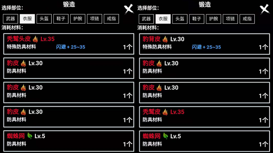 此时可以等级别升上去,再回头做自己喜欢的装备,也可以考虑使用更低等级的特殊材料。有些低等级特材并不比高等级的差,或者更好。