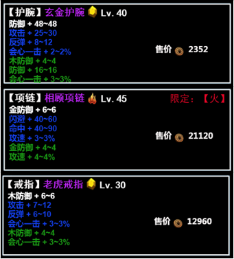 l 升级流:【玄金护腕】+【相顾项链】+【老虎戒指】
