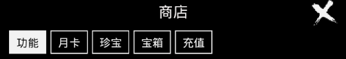 人物面板里面包含功能、月卡、珍宝、宝箱、充值五部分。