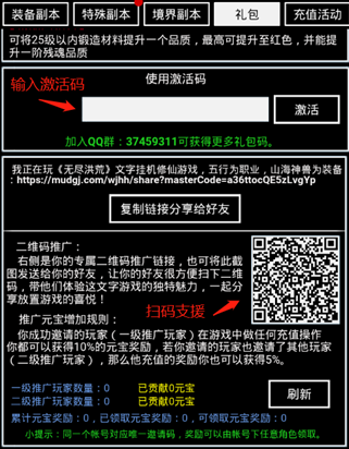 游戏内有一个推广活动,新玩家通过老玩家提供的二维码或推广链接注册游戏,之后新玩家充值,老玩家可以获得一定比例的元宝返还,该功能为白嫖玩家提供了福音,广交好友,一起征战四方。