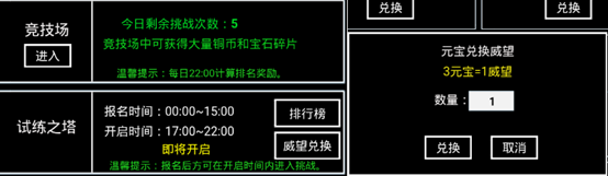 « 试炼之塔:35级开启,尽量打通关吧,哪怕多复活一次,现阶段威望需求太多了,而产出又太少了,氪金玩家可以直接买威望,忽略这条。