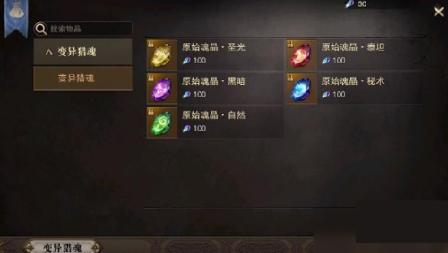 6、使用一定数量的命运晶石可在伊卡洛斯处兑换不同神系的原始魂晶,打开原始魂晶即可获得对应神系的随机一个变异猎魂。