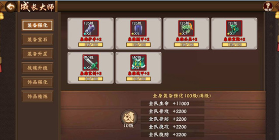 装备的进阶可以给装备获得更高的强化空间。进阶需要消耗装备原石和装备图纸,以及进阶石三种游戏资源。三种资源都是通过通关普通征战副本获得,需要注意的是,原石和图纸需要通关特定副本,而进阶石则是所有普通副本都会掉落。