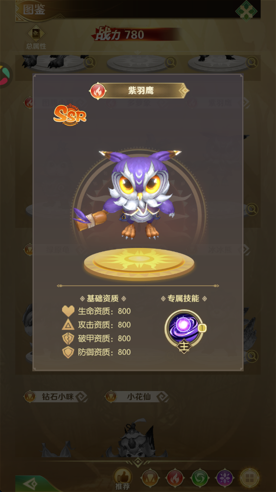 顽灵石的反伤护盾提供容错,紫羽鹰则是提供延迟高伤。