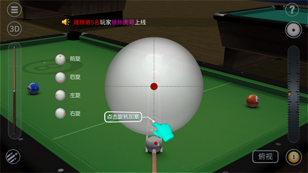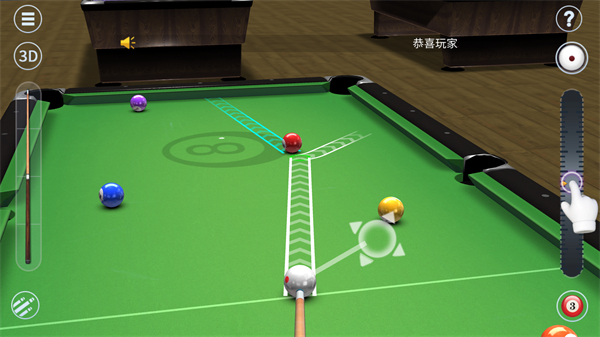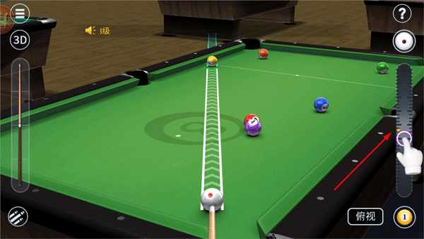 3、拉动左侧球杆可以控制力度,拉动的幅度越大则力度越大。