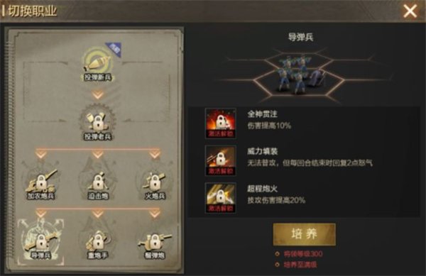 2、职业选择:最优:加农炮→导弹兵的路线,次选:迫击炮→重炮手