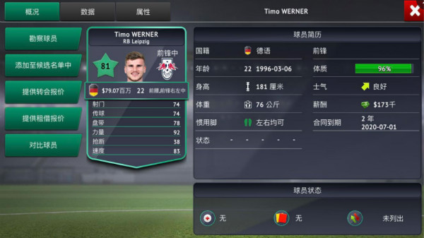 最后中后卫我选择了曼城的英格兰本土球员斯通斯,身价6779万,8500万拿下。前锋位置我选择莱比锡红牛的德国前锋维尔纳,身价7907万,1亿美元拿下(心疼死哥了)。