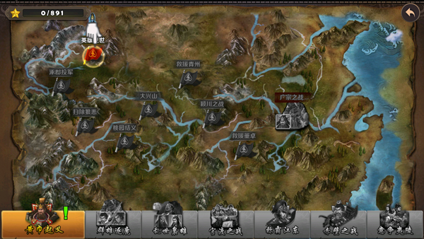 3、接着选择章节关卡,以及要上场的将领和武器台;