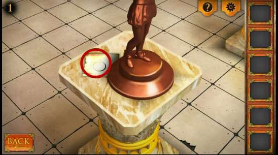 16、查看门左侧的动物雕像,将脖子上的圆环全部调整成蓝、绿、白色,下面三个均会互相影响,第二个点2下,第三个点1下,第四个点2下即可调整成下图中的样子,最后多点几下第一个即可解开。