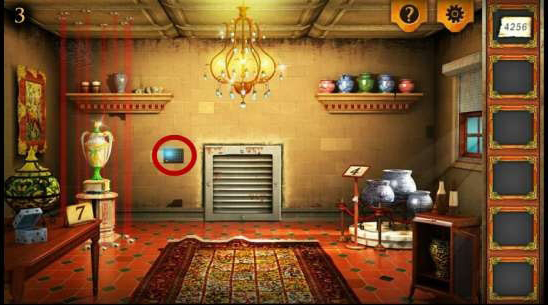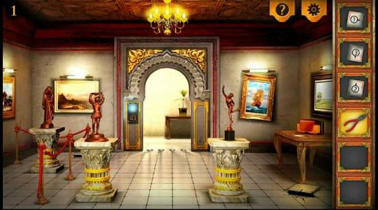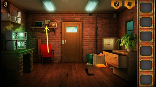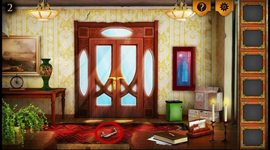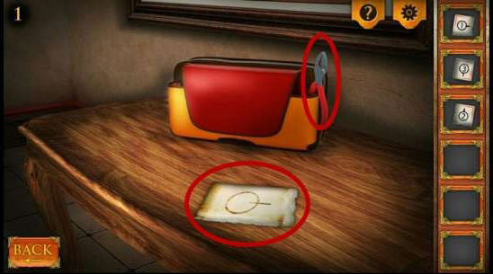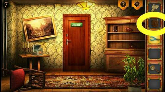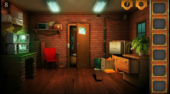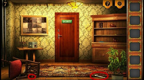 2、依次点击上图红圈所示5处地方,首先捡起上图1号圈所示的第1页纸,最后点击门左边的控制板。
