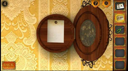4、接着我们点击壁钟,查看刚找到的纸上写着1:46分,由此得出要把钟上的时间调至1:46分。壁钟打开后,拿起里面的一页纸。