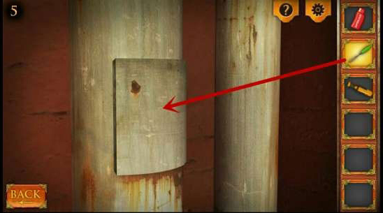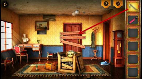 9、用钩子钩开钉在门上的木板即可进入下一关。