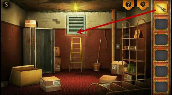 9、把梯子放在窗户下面,点击胶水、螺丝刀把、和螺丝刀头拼成一把完整的螺丝刀,然后用螺丝刀打开旋转开窗户的螺丝,就过关了。