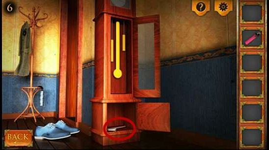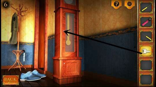 8、把两个钟摆放进去,下面的柜子会打开,点击获取里面的钩子。