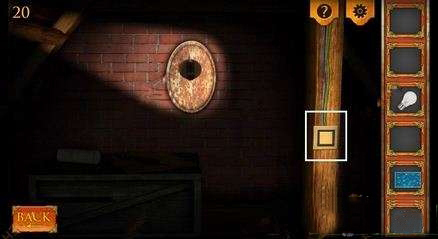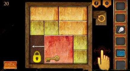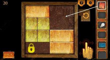8、点击小屋子的窗户,将钥匙木块放到右上角的大方框处,在通过滑动将钥匙移到锁的位置。